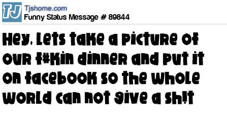 X is hey, lets take a picture of our f#kin dinner and put it on facebook so the whole world can not give a sh!t