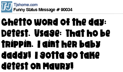 X Ghetto word of the day: Detest. Usage: That ho be trippin. I aint her baby daddy! I gotta go take detest on Maury!