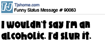 X I wouldn't say I'm an alcoholic. I'd slur it.