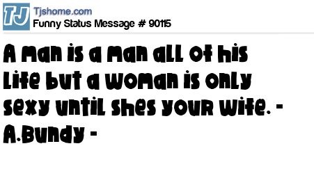 - # 16729 A man is a man all his life. A woman is only sexy until she becomes your wife.