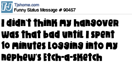X is I didn't think my hangover was that bad until I spent 10 minutes logging into my nephew's Etch-a-sketch