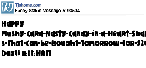 X is Happy Mushy-Card-Nasty-Candy-in-a-Heart-Shaped-Box-Big-Balloon-That-Barely-Fits-in-Your-Car-And-You-Can't-See-to-Back-Up-$75-Rose s-That-Can-be-Bought-Tomorrow-for-$20-but-Must-be-Sent-to-"Prove"-Your-Love-Stand-In-Line-for-Two-Hours-to-Eat Day!! <HATE