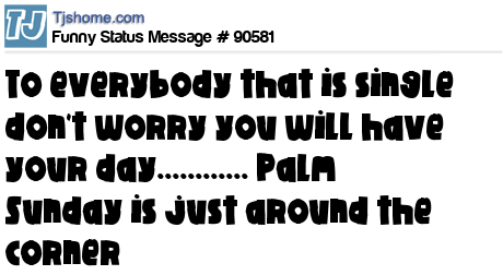 X is To everybody that is single don't worry you will have your day............ Palm Sunday is just around the corner