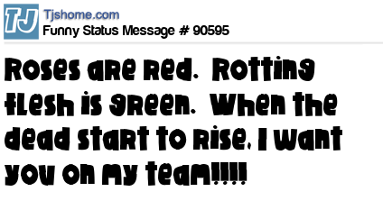 X Roses are red. Rotting flesh is green. When the dead start to rise, I want you on my team!!!!