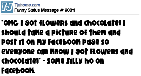 X says "OMG I got flowers and chocolate! I should take a picture of them and post it on my Facebook page so everyone can know I got flowers and chocolate!" - Some Silly ho on Facebook.