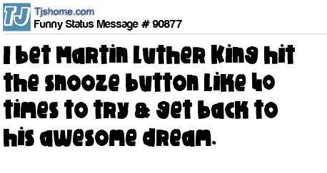 X is I bet Martin Luther King hit the snooze button like 40 times to try & get back to his awesome dream.