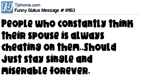 X is People who constantly think their spouse is always cheating on them..Should just stay single and miserable forever.