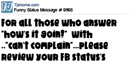 X is for all those who answer "how's it goin?" with .."can't complain"...please review your FB status's