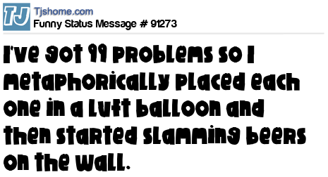X I've got 99 problems so I metaphorically placed each one in a luft balloon and then started slamming beers on the wall.