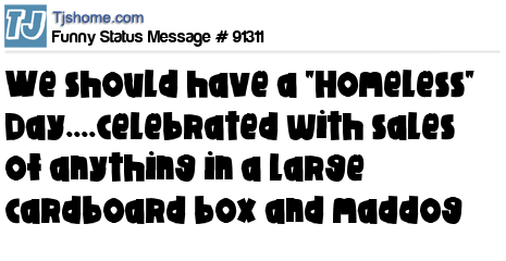 X is We should have a "Homeless" Day....celebrated with sales of anything in a large cardboard box and maddog