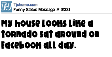 - # 91261 My house looks like a tornado sat around all day and watched TV.