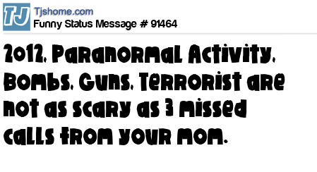 - # 76185 Not even 2012, Paranormal Activity 3, Shooting, Bomb Attacks, or Failing a Class is scarier then 5 missed calls from Mom.