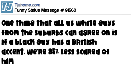 X One thing that all us white guys from the suburbs can agree on is if a black guy has a British accent, we're 85% less scared of him