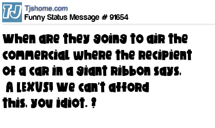 X says When are they going to air the commercial where the recipient of a car in a giant ribbon says, “A LEXUS! We can't afford this, you idiot.”?