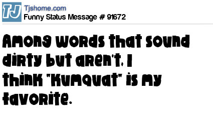 - # 184006 Of all the words that sound dirty but aren't, I think "kumquat" is my favorite.