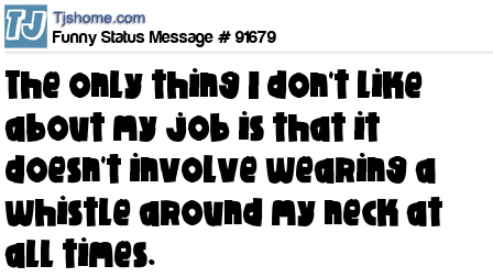 X The only thing I don't like about my job is that it doesn't involve wearing a whistle around my neck at all times.