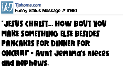 X "JESUS CHRIST... HOW BOUT YOU MAKE SOMETHING ELSE BESIDES PANCAKES FOR DINNER FOR ONCE!!!!" - Aunt Jemima's nieces and nephews.