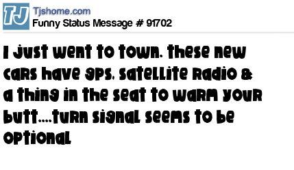 X says i just went to town. these new cars have gps, satellite radio & a thing in the seat to warm your butt....turn signal seems to be optional