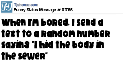 - # 90920 whenever your bored send this text to a random number.. "I hid the body."