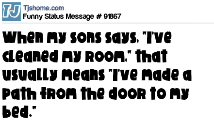 X When my sons says, "I`ve cleaned my room," that usually means "I`ve made a path from the door to my bed."