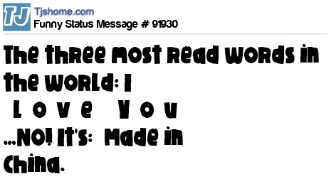 X says The three most read words in the world: I̶ ̶L̶o̶v̶e̶ ̶Y̶o̶u̶ …NO! It's: “Made in China.”