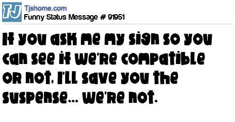 X if you ask me my sign so you can see if we're compatible or not, I'll save you the suspense... we're not.