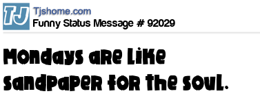 - # 33033 waiting for the boring weekly "hating mondays" statuses...btw, I'm gathering mondays to throw at you!