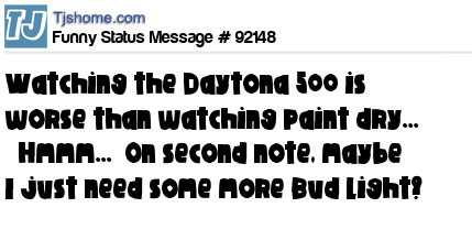 X Watching the Daytona 500 is worse than watching paint dry... Hmmm... On second note, maybe I just need some more Bud Light?