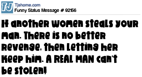 - # 104054 When a woman steals your husband, there is no better revenge than to let her keep him.
