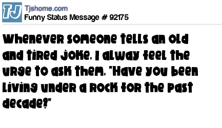X says Whenever someone tells an old and tired joke, I alway feel the urge to ask them, "Have you been living under a rock for the past decade?"