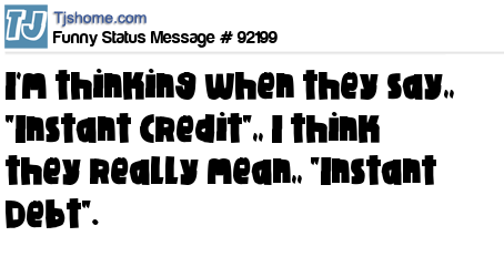 X I'm thinking when they say,, "Instant Credit",, I think they really mean,, "Instant Debt".