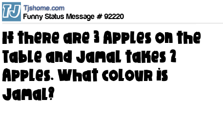 X is If there are 3 Apples on the Table and Jamal takes 2 Apples. What colour is Jamal?