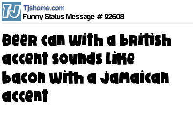 - # 85196 Did you know if you say "beer can" with a British accent, you have also just said "bacon" with a Jamaican accent?