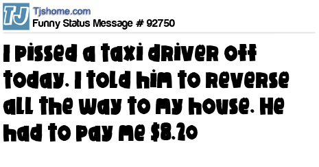 X is I pissed a taxi driver off today. I told him to reverse all the way to my house. He had to pay me $8.20