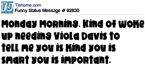 X is Monday Morning. Kind of woke up needing Viola Davis to tell me you is kind you is smart you is important.