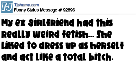 X says My ex girlfriend had this really weird fetish... She liked to dress up as herself and act like a total bitch.