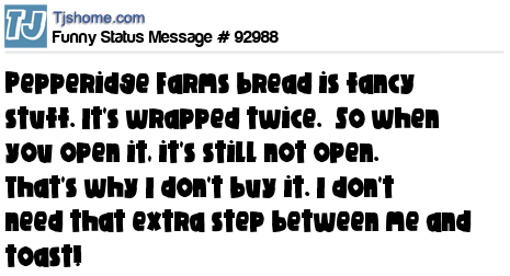 X Pepperidge Farms bread is fancy stuff. It's wrapped twice. So when you open it, it's still not open. That's why I don't buy it. I don't need that extra step between me and toast!