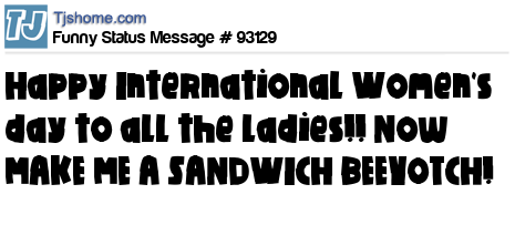 X says Happy International Women's day to all the ladies!! Now MAKE ME A SANDWICH BEEYOTCH!
