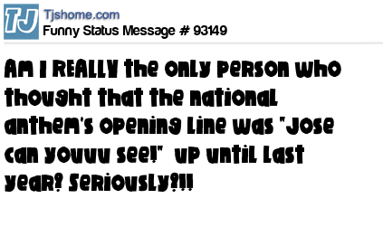 X says Am I REALLY the only person who thought that the national anthem's opening line was "Jose can youuu see!" up until last year? Seriously?!!