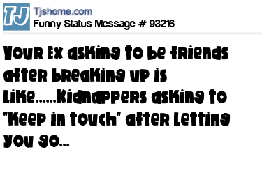 X is Your Ex asking to be friends after breaking up is like......Kidnappers asking to "keep in touch" after letting you go...