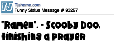 - # 183741 "Ramen." - Scooby Doo finishing a prayer.