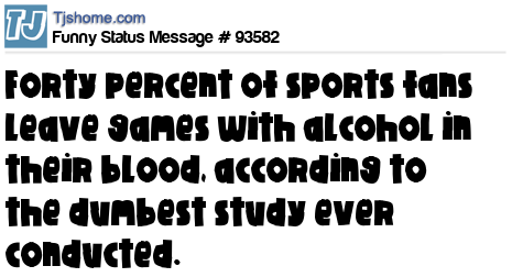 X Forty percent of sports fans leave games with alcohol in their blood, according to the dumbest study ever conducted.