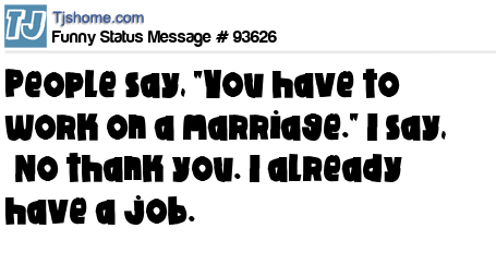 - # 93813 People say, "You have to work on a marriage." No thank you. I already have a job.