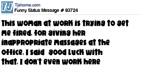 - # 39061 This Girl At The Office Keeps Trying To Get Me Fired, She Keeps Saying I'm Giving Her Innapropiate Massages At The Work Place, Well I Say Goodluck Sweetheart I Don't Even Work Here