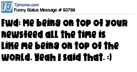X says Fwd: Me being on top of your newsfeed all the time is like me being on top of the world. Yeah I said that. :)