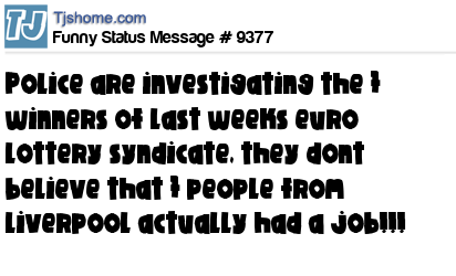X police are investigating the 7 winners of last weeks euro lottery syndicate, they dont believe that 7 people from liverpool actually had a job!!!