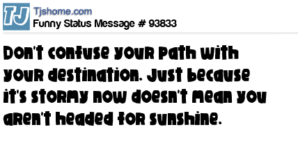 X Don't confuse your path with your destination. Just because it's stormy now doesn't mean you aren't headed for sunshine.