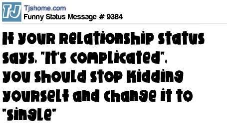- # 16061 I think if your relationship status says, "It's complicated" that you should stop kidding yourself and change it to "Single" or petition for a new status called "I am bootycall."