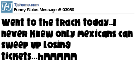 X is went to the track today..I never knew only mexicans can sweep up losing tickets...hmmmmm
