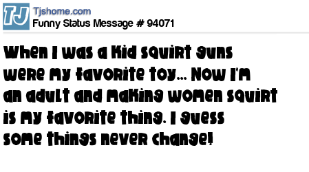 X When I was a kid squirt guns were my favorite toy... Now I'm an adult and making women squirt is my favorite thing. I guess some things never change!